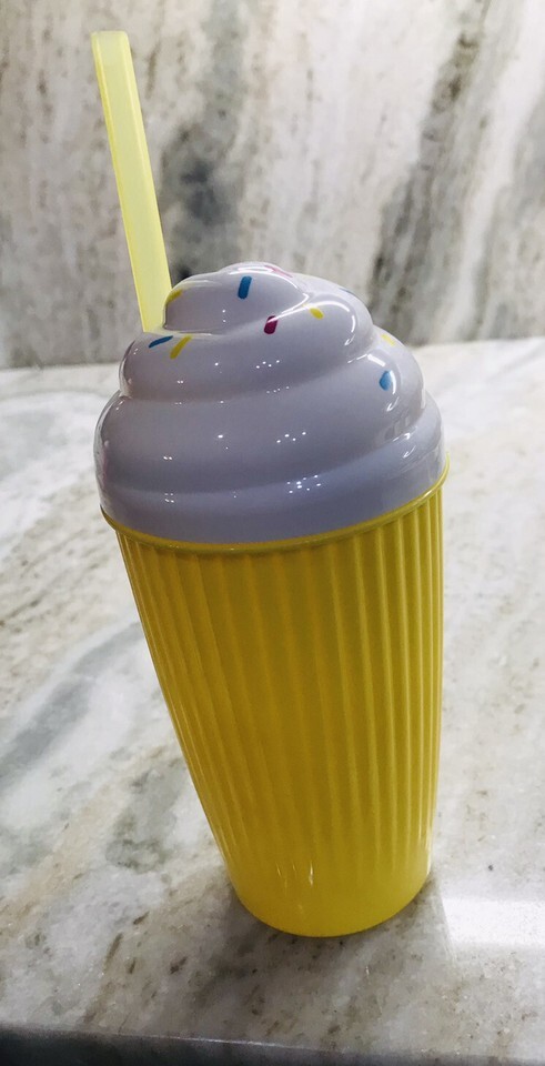 Smoothie Shape Plustic Cup W/Straw-10oz-Yellow/Greenbrier