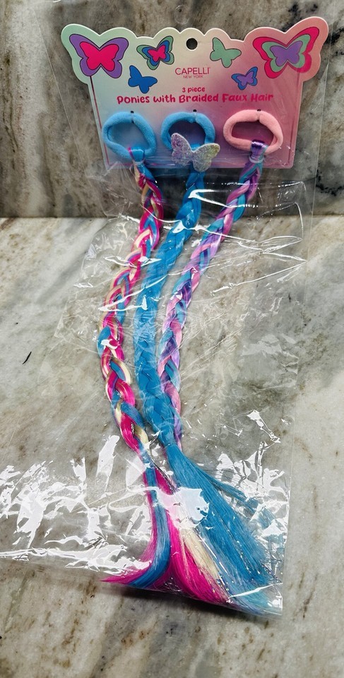 Capelli 3 Pc Donies W/Braided Faux Hair. Multicolor. ShipN24Hours. Inventory Location MW999