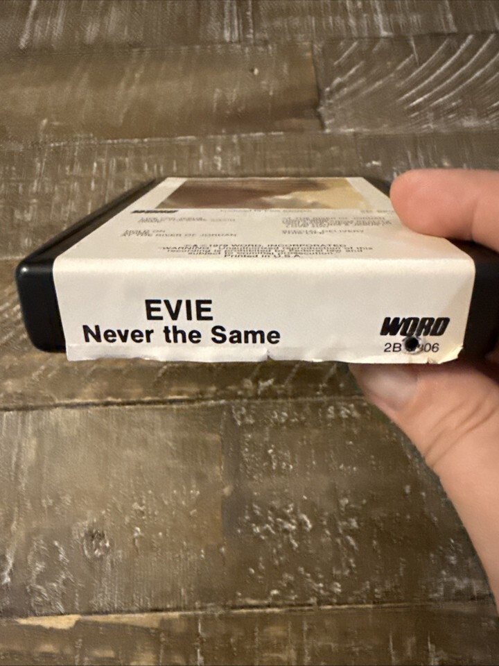 The product is an 8-track tape featuring the artist Evie, with the release title "Never The Same." This vintage music format allows listeners to enjoy Evie's music in a unique and nostalgic way, capturing the essence of her music from that era. Perfect for music enthusiasts looking to explore new and unique formats to enjoy their favorite artists.