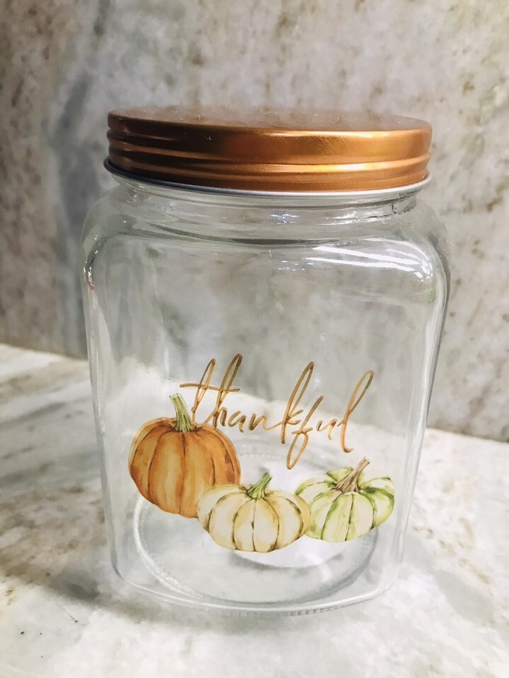Clear Glass Jar with Rose Gold Lid & Thankful 24 Top Not Working Properly