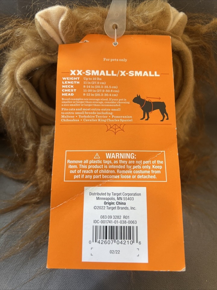 Dress up your furry friend in this adorable Hyde EEK! Boutique? Lion Ruff Headwear Dog and Cat Costume in Brown. Perfect for Halloween or any other costume party, this costume is made of polyester and acrylic materials and features a cute lion ruff design. The XXS/XS size is perfect for small dogs and cats, and the brown color adds a touch of elegance to the outfit.