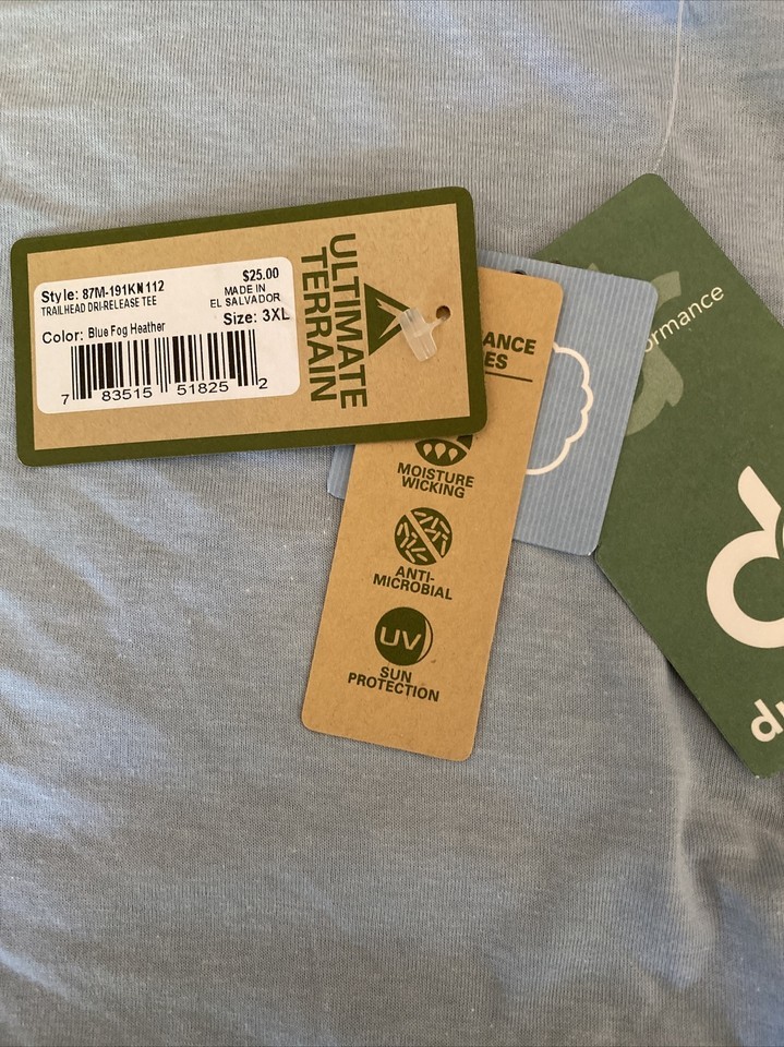 Ultimate Terrain mens 3XL blue fog heather tshirt.