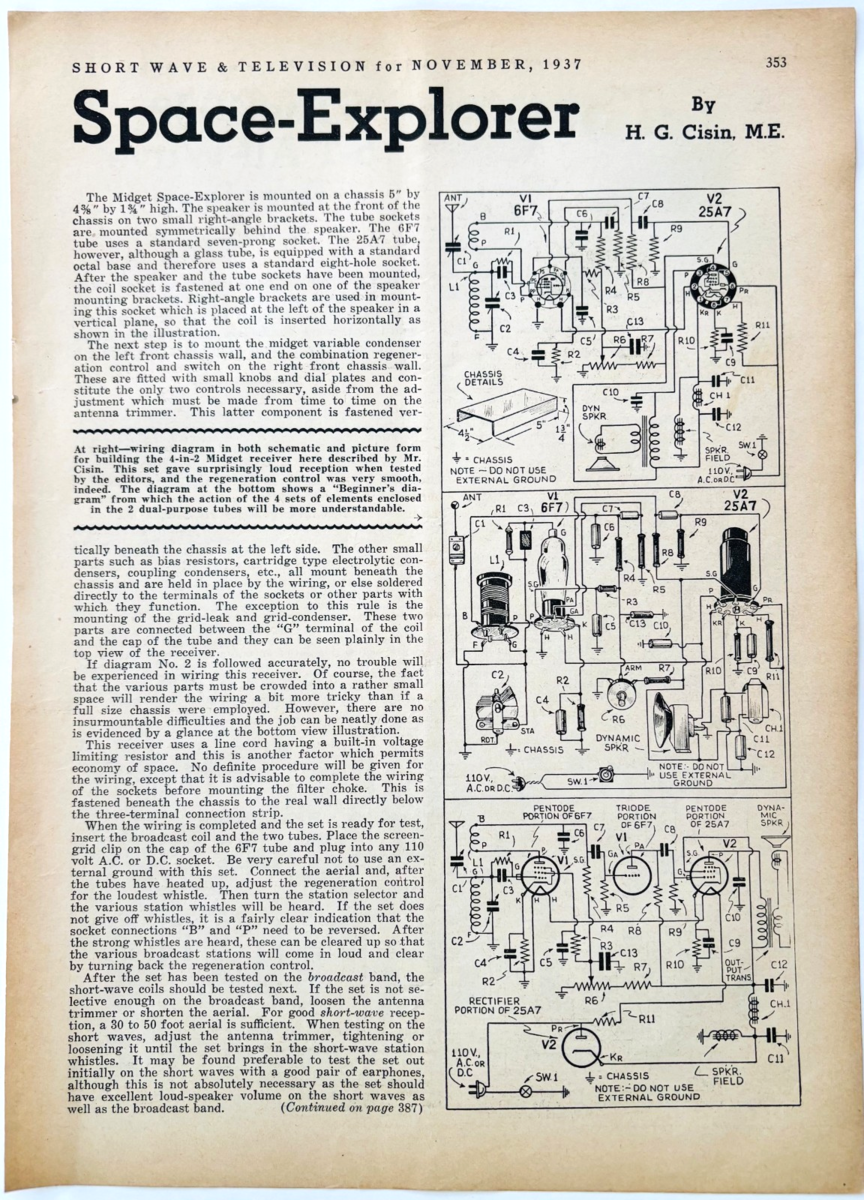 1937 Space Explorer Midget Receiver Wiring Diagram Vintage Schematics DWW12C