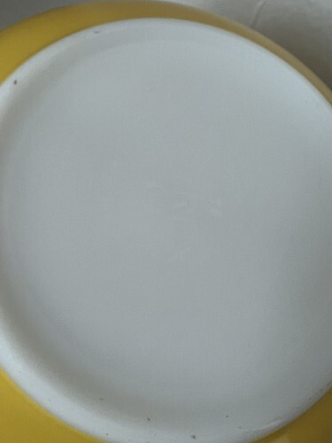 403 2 1/2 qt. Yellow shiny no chips no cracks a few scratches on the outside of the bowl