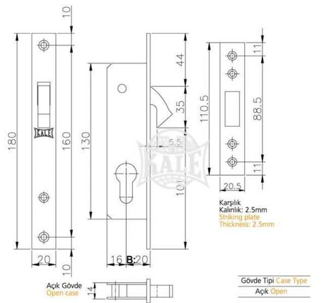 KALE KILIT 201 Hook Lock Deabolt For Sliding Door +Cylilinder Lock KALE SNC