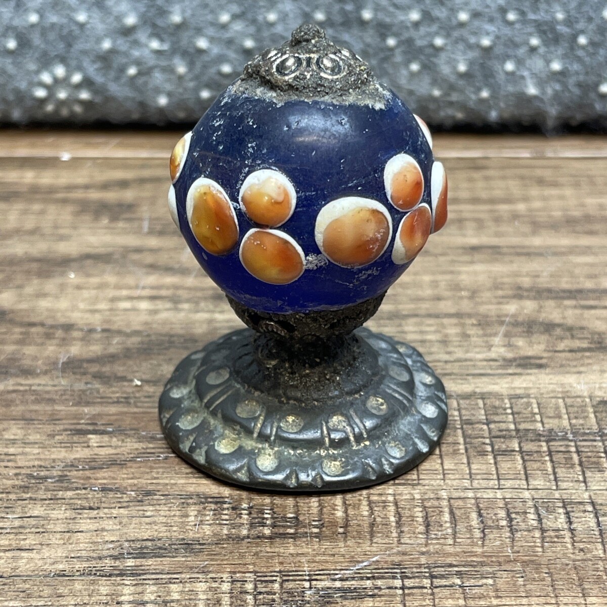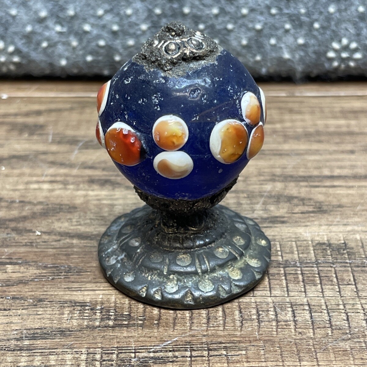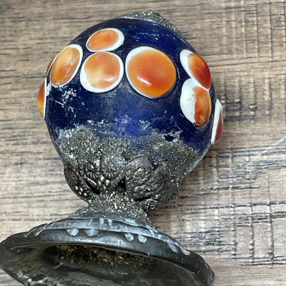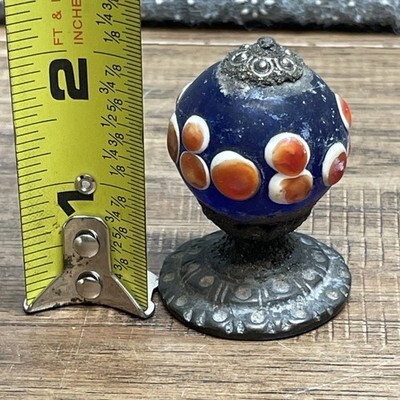 Antique Chinese Hat Button Knob Glass Metal Orange Blue White Unique LG AG