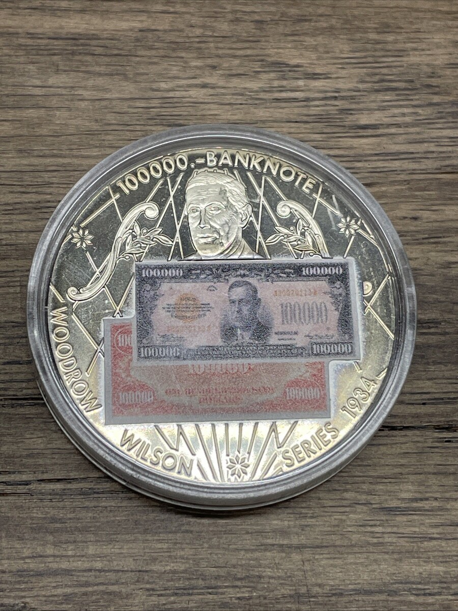 2007 American Mint BANKNOTE OF THE USA $100,000 WOODROW WILSON Medallion KG JD