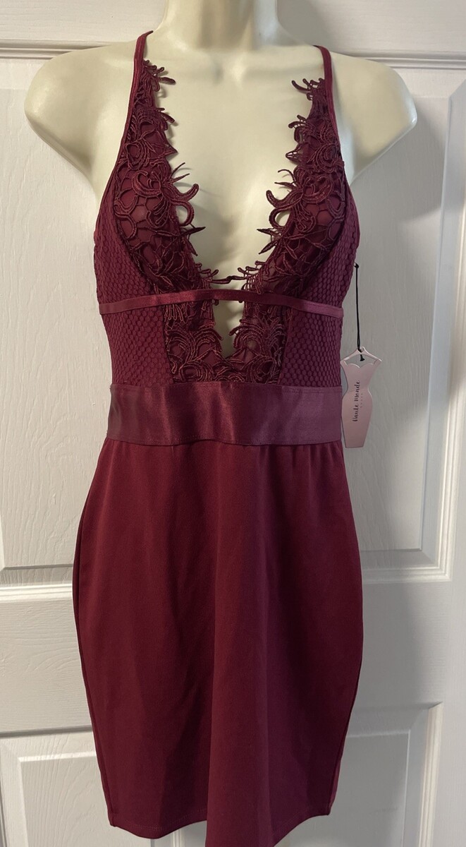 NWT Haute Monde Maroon Dark Red Spaghetti Strap Bodycon Dress Woman's M KG JD