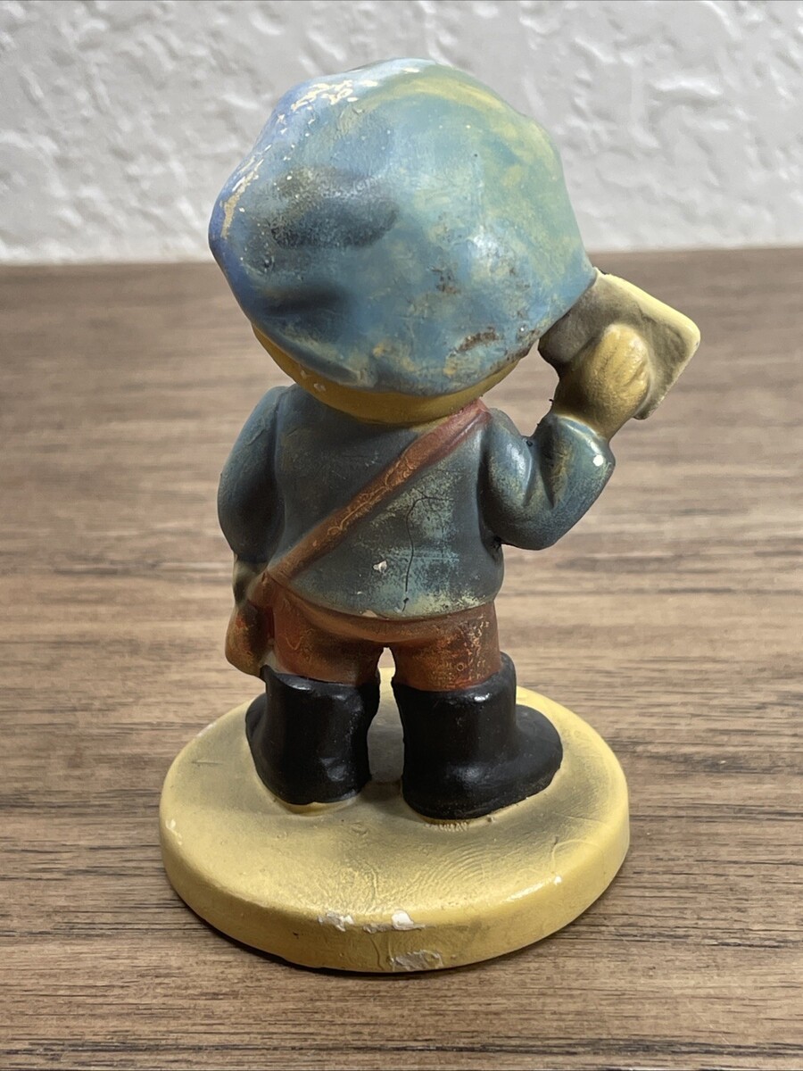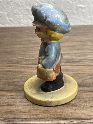 Paint is beginning to crack on the top of the hats of the figurines and is fading. Stamped on the bottom. Please see pictures for condition details and measurements.