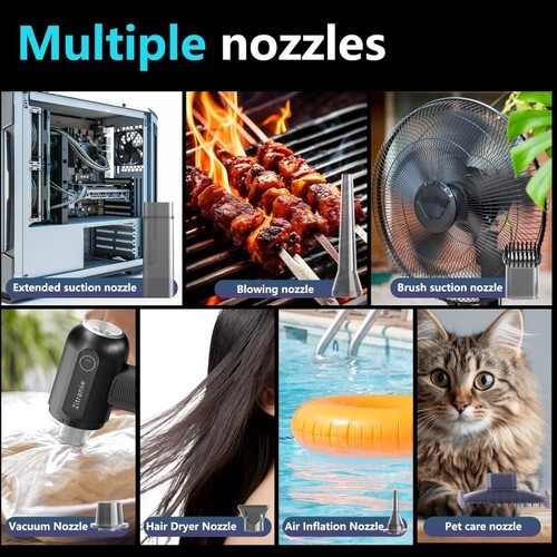 Not only can clean dust and other impurities from electronic devices, computer keyboards, office desks, carpets, and vehicle interiors, but also blowing charcoal for barbecues and inflating swimming rings
