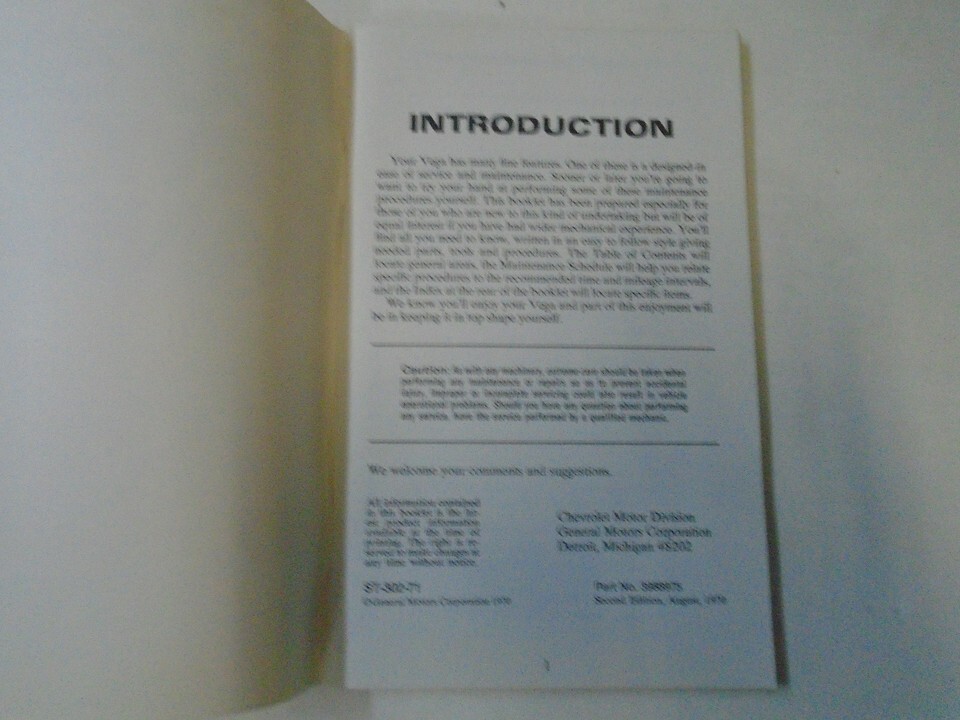 1969 1970 Chevrolet Chevy Vega Do It Yourself MINOR STAINS OEM