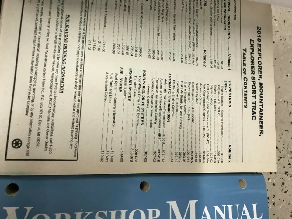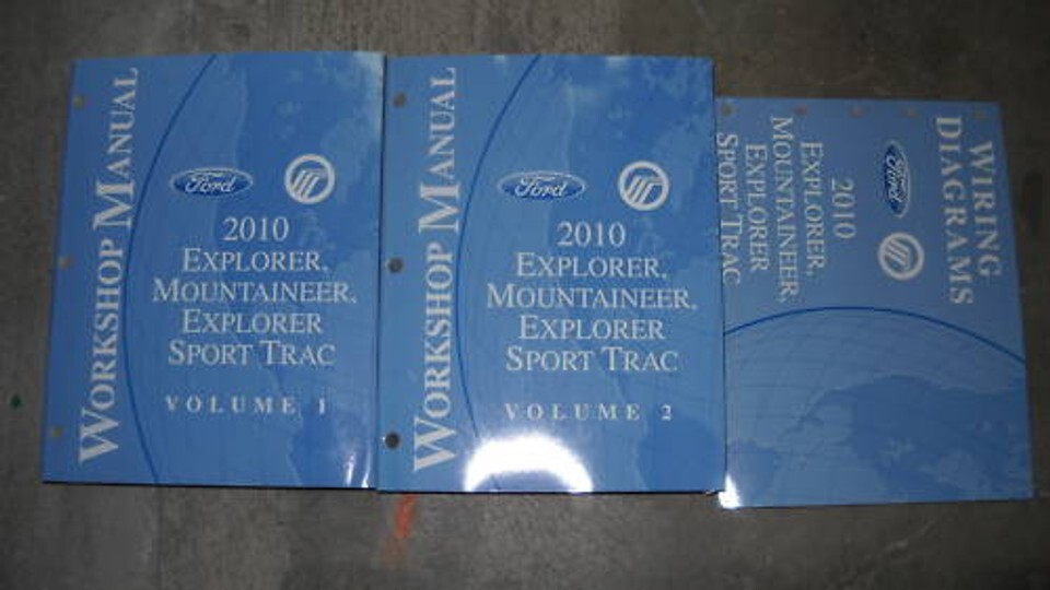 Factory 2010 Ford Explorer / Mountaineer / Sport Trac Service Manuel, Manuel de reference de transmission, Manuel de diagnostic des emissions de controle du groupe motopropulseur et Manuel des schemas de cablage.