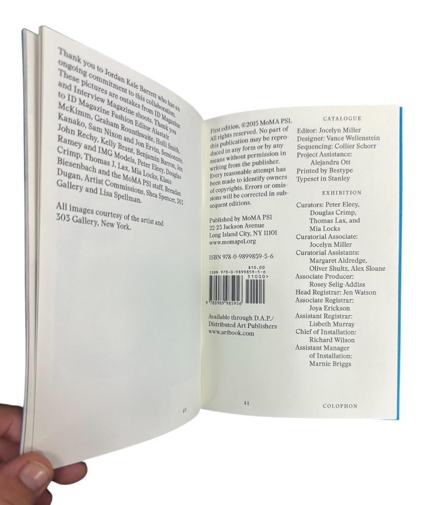 I Blame Jordan by Collier Schorr MoMA PS1 2016 Softcover First Edition Not sure if it was ever used Residue from a sticker on the back Comes as shown
