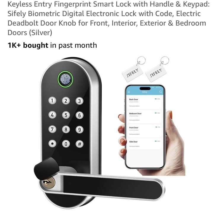 Keyless Entry Fingerprint Smart Lock with Handle & Keypad: Sifely Biometric