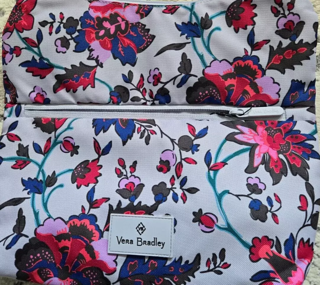 The bag features a zip closure and an adjustable strap, allowing you to customize the fit to your liking. With a size of 10.5" w x 11.5" h x 1.75" d and a 54.0" adjustable strap, this bag is perfect for all your daily essentials. The bag also has Vera Bradley logo.