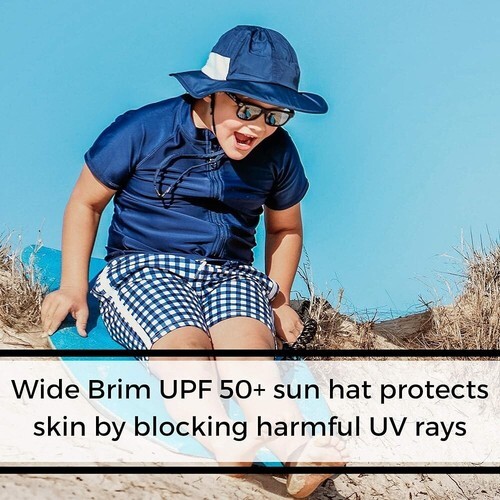 Kids Swim Zip Navy Blue Sz 8-14 Youth Bucket Hat UPF 50+ Wide Brim Cap Beach NWT