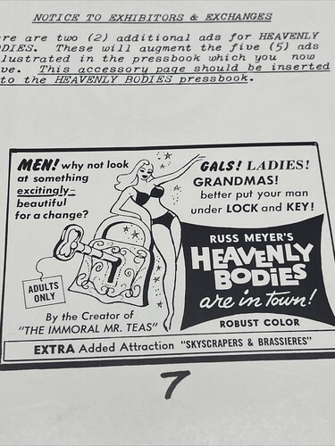 Russ Meyer Heavenly Bodies Original Movie Press Kit Poster 1963 Eastman JD