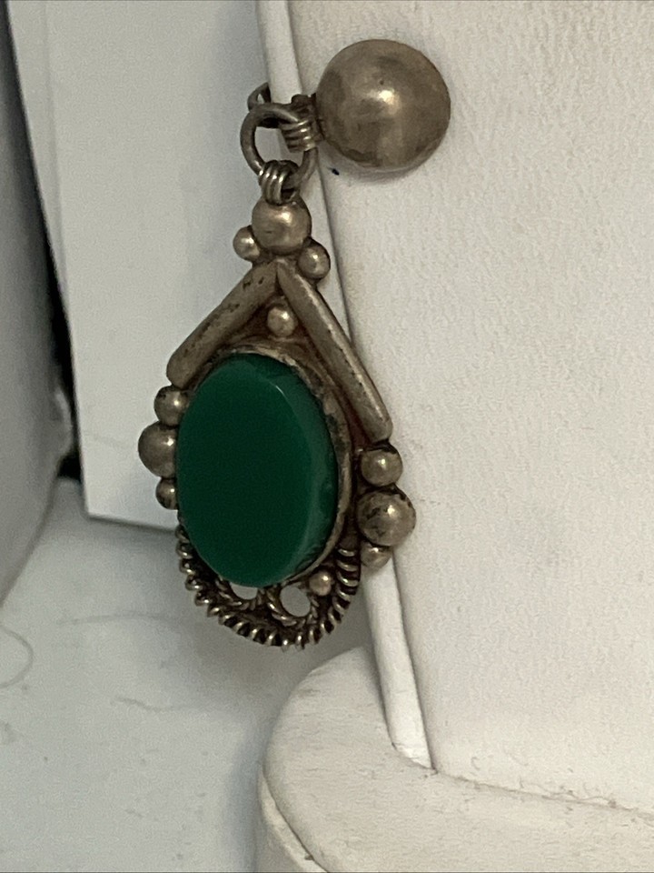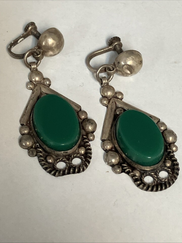 Vintage Sterling Silver 925 Chrysoprase Screw Back Earrings Guadalajara Mexico