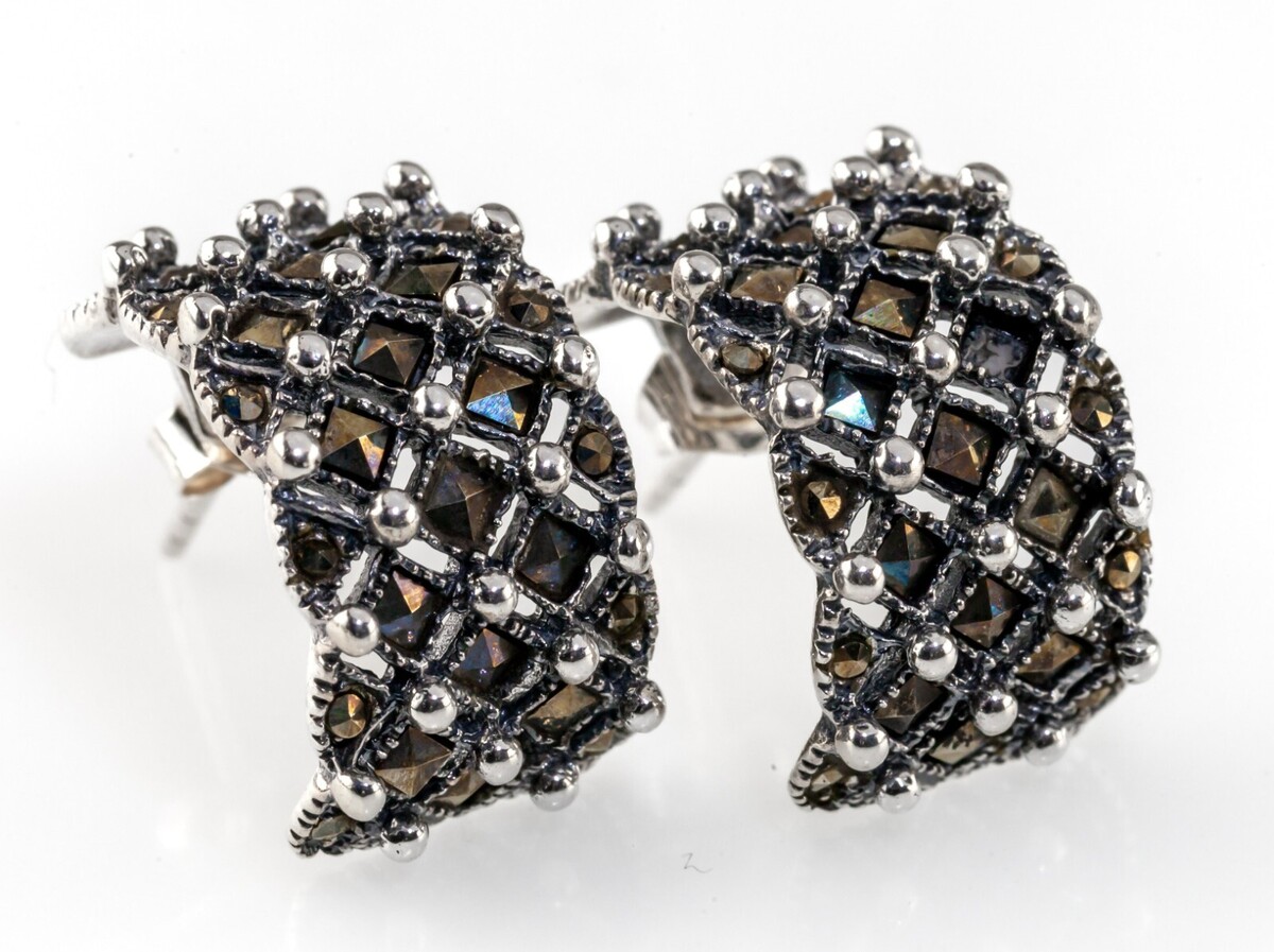 Schone Sterling Silber Markasit Armband und Ohrringe Set Milgrain Detail