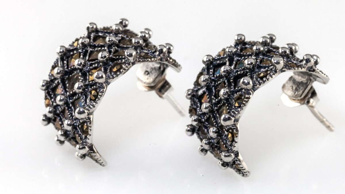 Schöne Sterling Silber Markasit Armband und Ohrringe Set Milgrain Detail