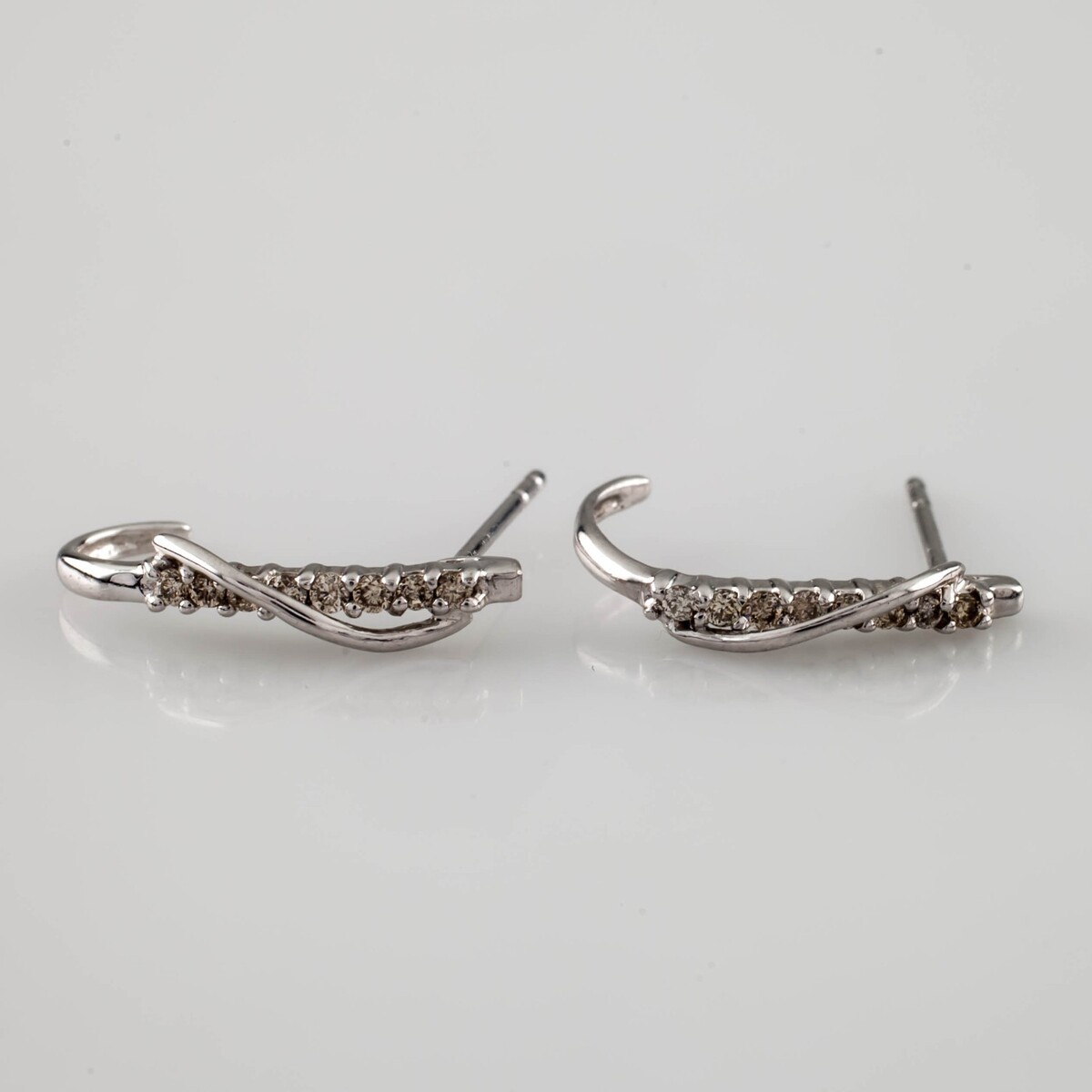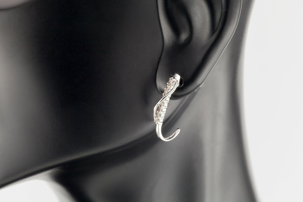 14k Weiss Gold Diamant Halb Creolen Tdw = 0.15 Karat, H Farbe, Si Klarheit