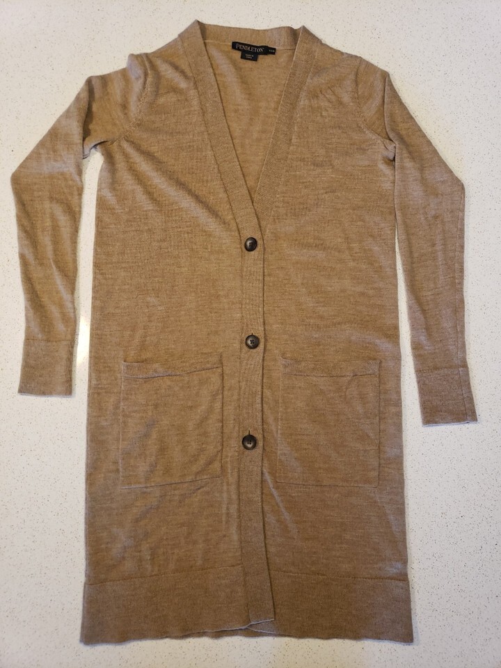Pendleton Sweater Womens XXS Beige Merino Wool Cardigan Duster Timeless Jacket
