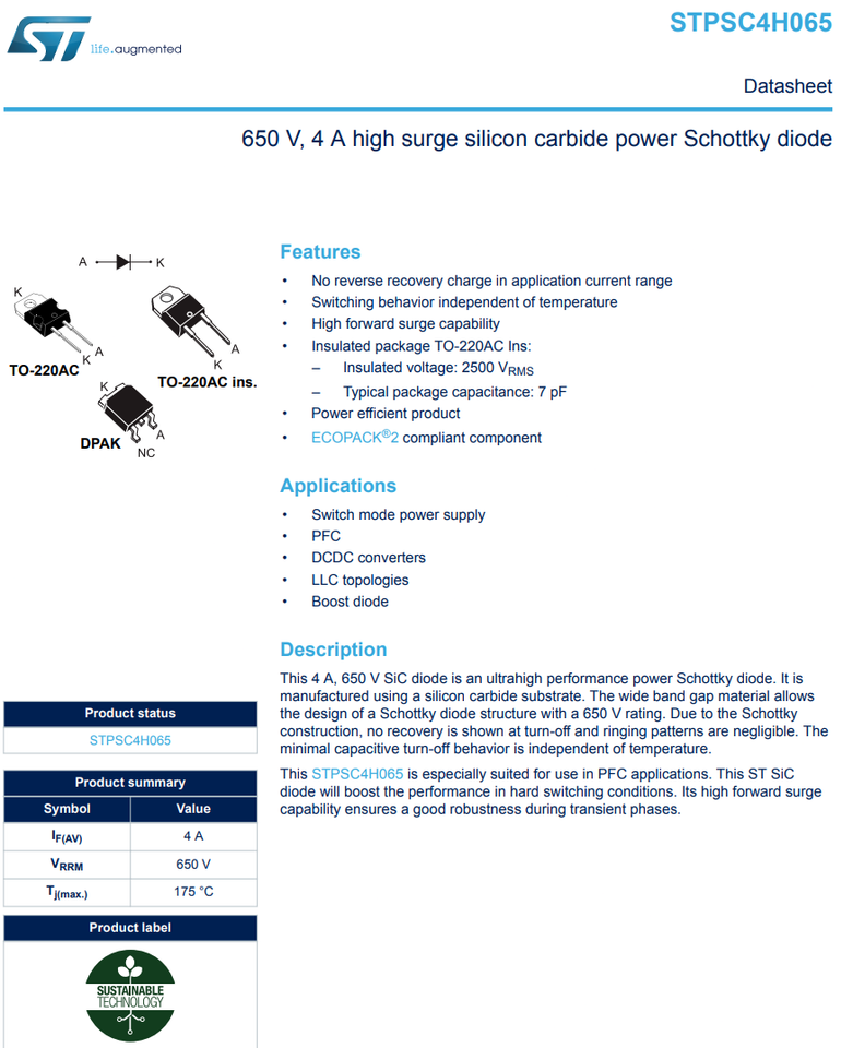 2PCS STPSC4H065DI St Power Schottky Diode Si and 50 similar items