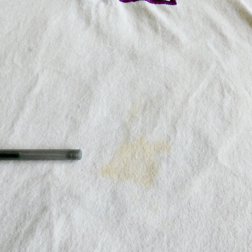 has a 3-4 inch stain on the front middle below the NIN (see photo #3)