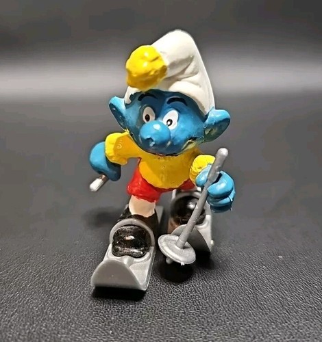 UP FOR SALE: Vintage 1978 Schleich Peyo Super Smurf Schlumpf 4.0205 Skier Smurf Made in Germany