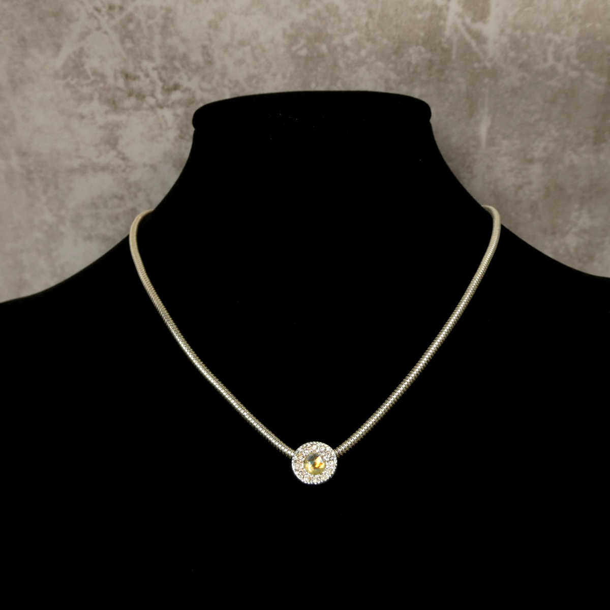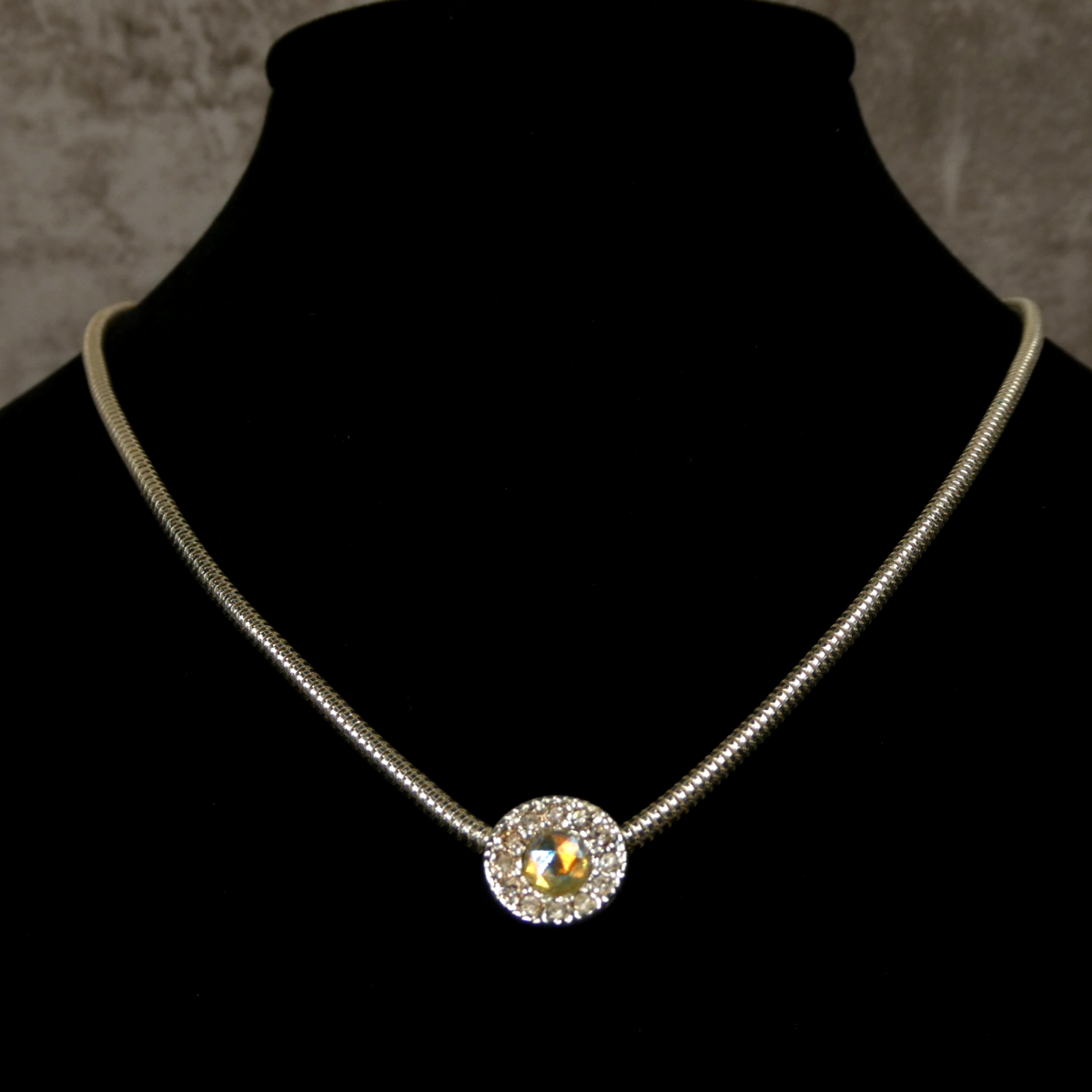 For Sale: AVON Faceted Stone Pendant Silver-Toned Snake Chain 16" Necklace in Original Box