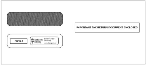 Ensure immediate attention! Double-window envelopes come preprinted with the statement Important Tax Return Document Enclosed. Item# TF33331 Size: 8 1/2" x 3 7/8" Printed lining to protect your privacy Meets IRS regulations First window size: 3 1/4" x 7/8"