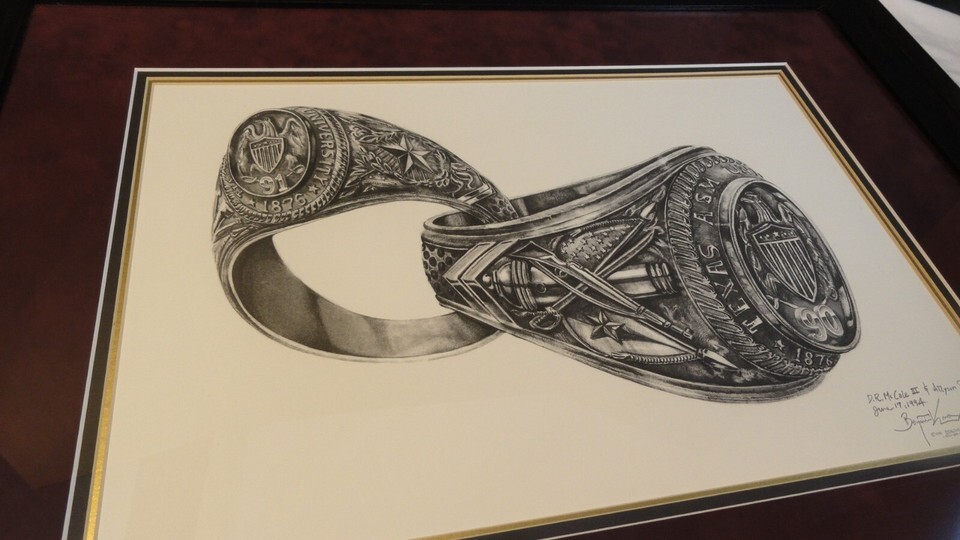 THIS WAS PURCHASED AT A sale: LOOKS LIKE A DR AND HIS WIFE HIRED BENJAMIN KNOX TO DO A CUSTOM PRINT OF HIS WIFE AND HIS COLLEGE RINGS, ONCE THE PRINT WAS COMPLETED THEY HAD IT FRAMED AT HOBBY LOBBY. THIS IS A GREAT FIND IF YOU KNOW ANYTHING ABOUT THE ARTIST.