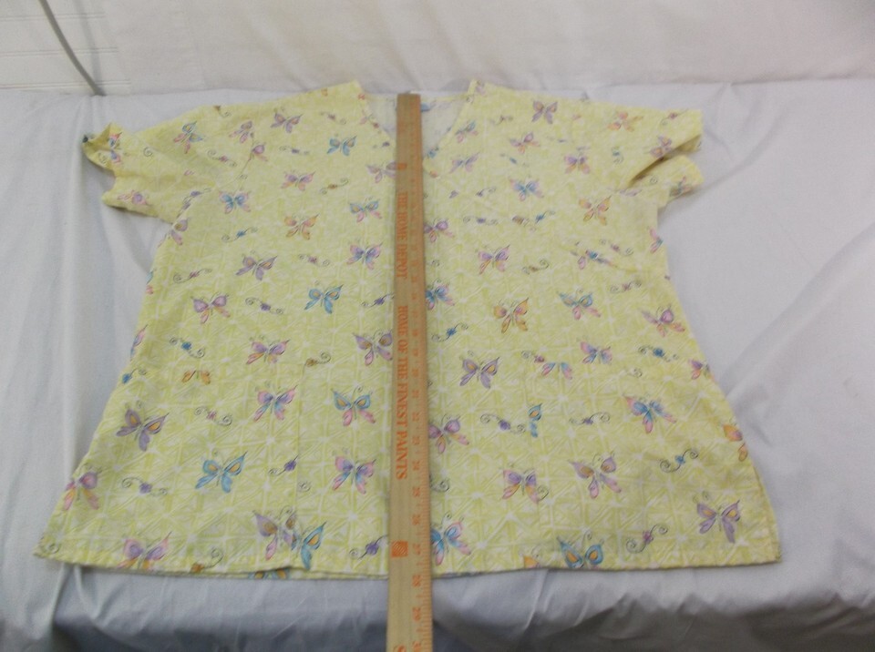 SB Scrubs Yellow Multi Colored Butterfly Pattern Scrub Top Large 140232