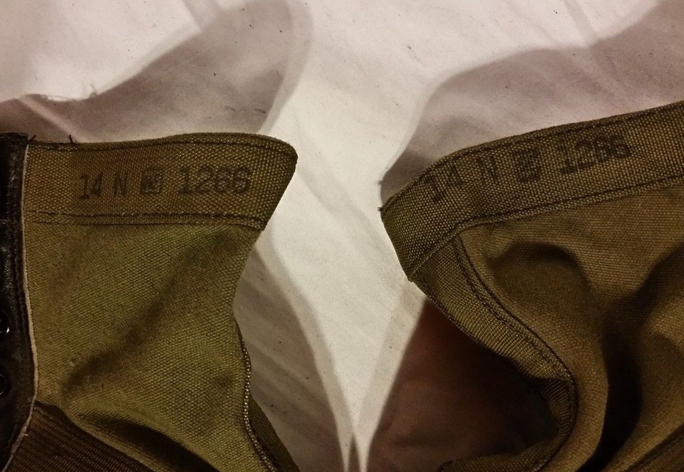 ANOTHER INDICATION FOR COPIES IS THEY CANNOT GIVE YOU THE ORIGINAL BLACK SHOE LACES THAT CAME WITH THESE BOOTS, ALL MY BOOTS COME WITH THE ORIGINAL 1963 TO 1968 BLACK SHOE LACES, YOU KNOW THE ONES, THE KIND THAT WHEN THE TIP COMES OFF, WE EITHER HAD TO BURN THEM , TWIST THEM, OR SQUEEZE THEM SO THEY WOULD GO INTO THE EYELET AND YOU WOULD TAKE 10 TO 20 MINUTES ON EACH EYELET, BROKEN IN JUNGLE BOOTS ARE THE BEST BOOT YOU CAN HAVE, ONCE THESE BOOTS ARE BROKEN IN YOU WILL BE UNSTOPPABLE FOR ANY MISSION, PLEASE KNOW THAT THERE ARE MANY COPIES AND FAKES , YES THE MILITARY CONTRACTED WITH COUNTRIES LIKE CHINA, KOREA, AND INDIA IN THE 60s , YOU KNOW YOU ARE GETTING THE REAL DEAL AND NO REPLICAS WHEN YOU GET THE VENTED CROOKED HOLES ON THE SIDE AND THE VENTED SHOE INSERT FOR THE JUNGLE BOOT, YOU WILL GET ONE WITH YOUR PAIR OF BOOTS, JUST REMEMBER THAT JUST BECAUSE IT HAS THE SIZE ON THE VENTED INSERT, DOSENT MEAN IT WILL FIT, YOU MAY HAVE TO CUT IT TO YOUR EXACT SPECIFICATION FOR YOUR BOOTS, JUST LIKE I DID IN 1985. ALSO THESE BOOTS HAVE THE PROTECTIVE SPIKE, THATS ANOTHER INDICATION FOR AUTHENTICITY .