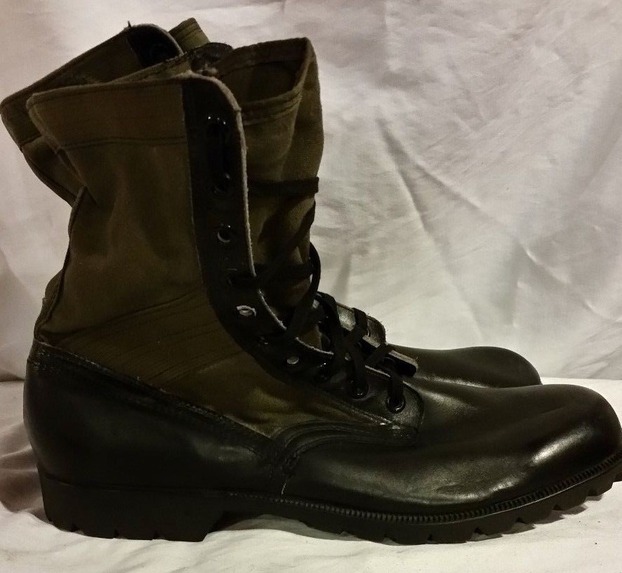 The original U.S. Government Jungle Boot designed for the terrain of Vietnam. O.D. Green canvas nylon uppers and leather bottoms. Panama and Spike protective sole. Dates on the boots vary but are mostly dated from the 1960's. Genuine U.S. Military Issue, these are the real thing.