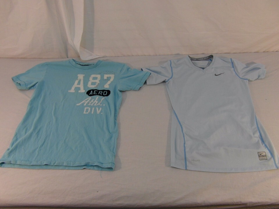 (2) Adult Women's Shirts Nike & Aeropostale Light Blue Athletic Shirts 30824