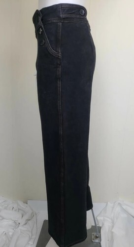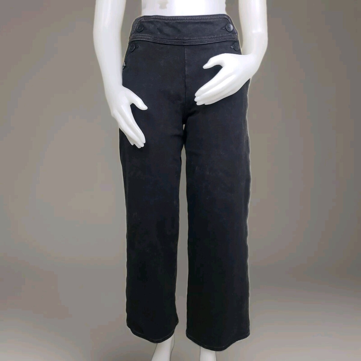 TravelSmith Wide Leg Sailor Pants Womens Sz 8 Petite Black Baggy Denim Trousers