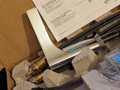 A vendre est un nouveau robinet de lavabo de salle de bain largement repandu Delta 3574-MDU-DST Zura 8 pouces dans une boîte ouverte, boîte chromee.