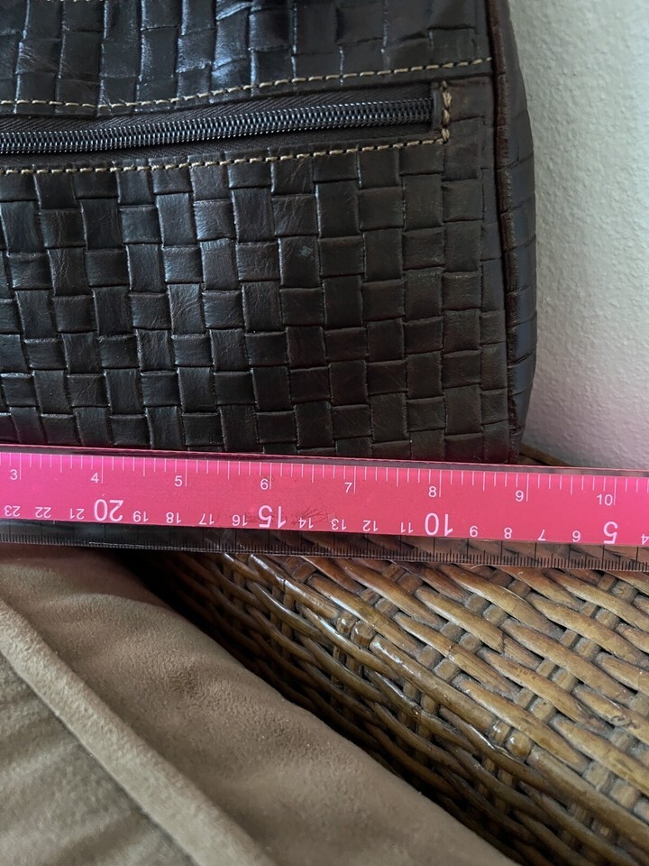 This Jack Georges crossbody bag is a stylish accessory for any woman. Made with hand-stained buffalo leather and embossed with a woven pattern, it is both durable and fashionable. The exterior color is a rich brown, and the interior has enough space to hold all of your essentials. The brand, Jack Georges, is known for their high-quality leather goods. This bag is perfect for everyday use or a night out on the town. Purchase it today and elevate your wardrobe.