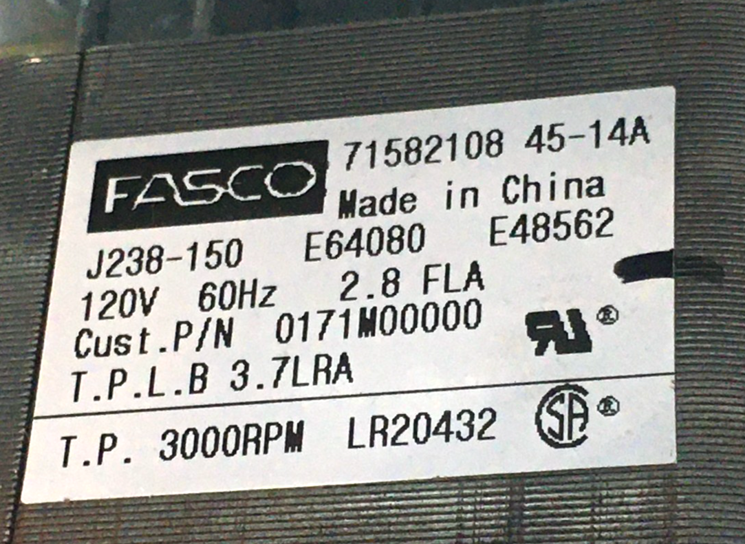 This is JAKEL J238-150 Inducer Blower Motor 71582108 70582690 Goodman 0171M00000 120V 3000 RPM used part.