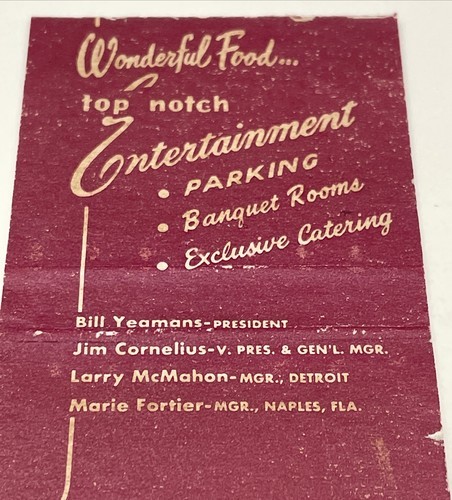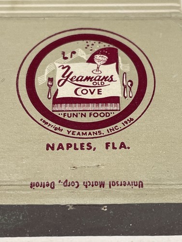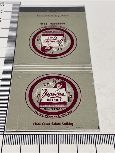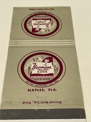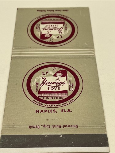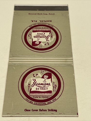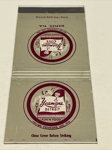 Matchbook Cover Yeamans of Detroit Fun’N Good Naples, FL Unstruck gmg