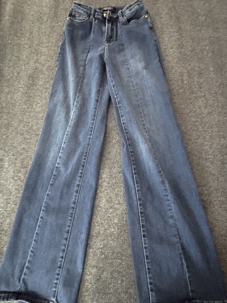 Judy Blue Wide Leg Trouser Jeans Front Seam Copper Buttons/Rivets Size 1/25