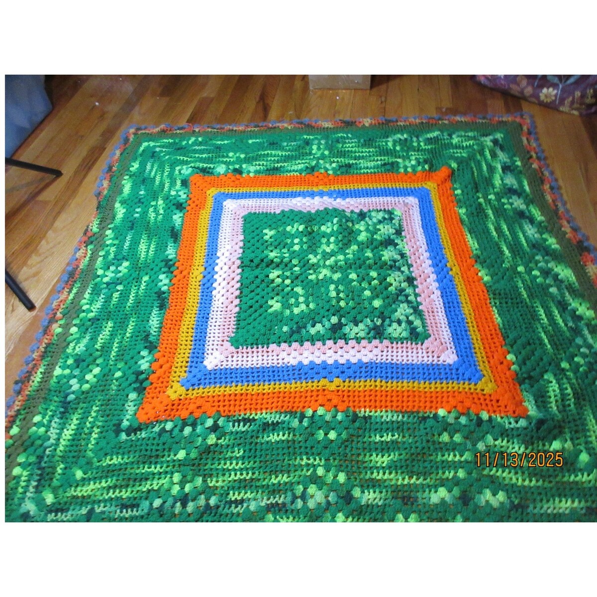 Keywords: crochet, blanket, throw, handmade, granny square, boho, multicolor, home decor, cozy, afghan, patchwork, fiber art, vibrant, unique gift