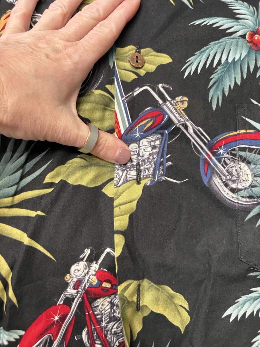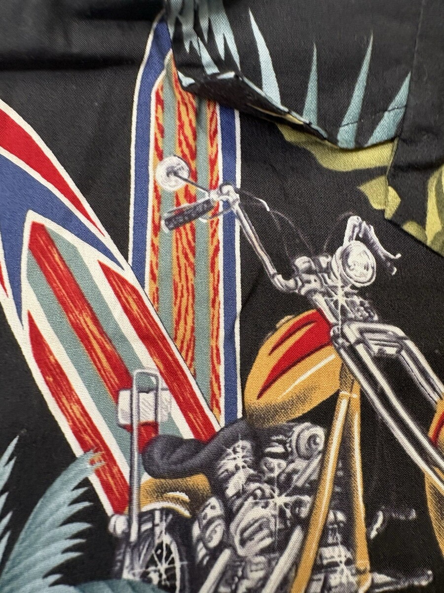 Aloha Line Hawaii Button Up Shirt Mens L Black Red Motorcycle surfboards