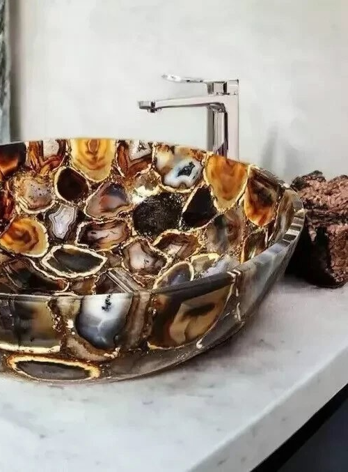 15" Round Natural Agate Stone Washbasin and 50 similar items