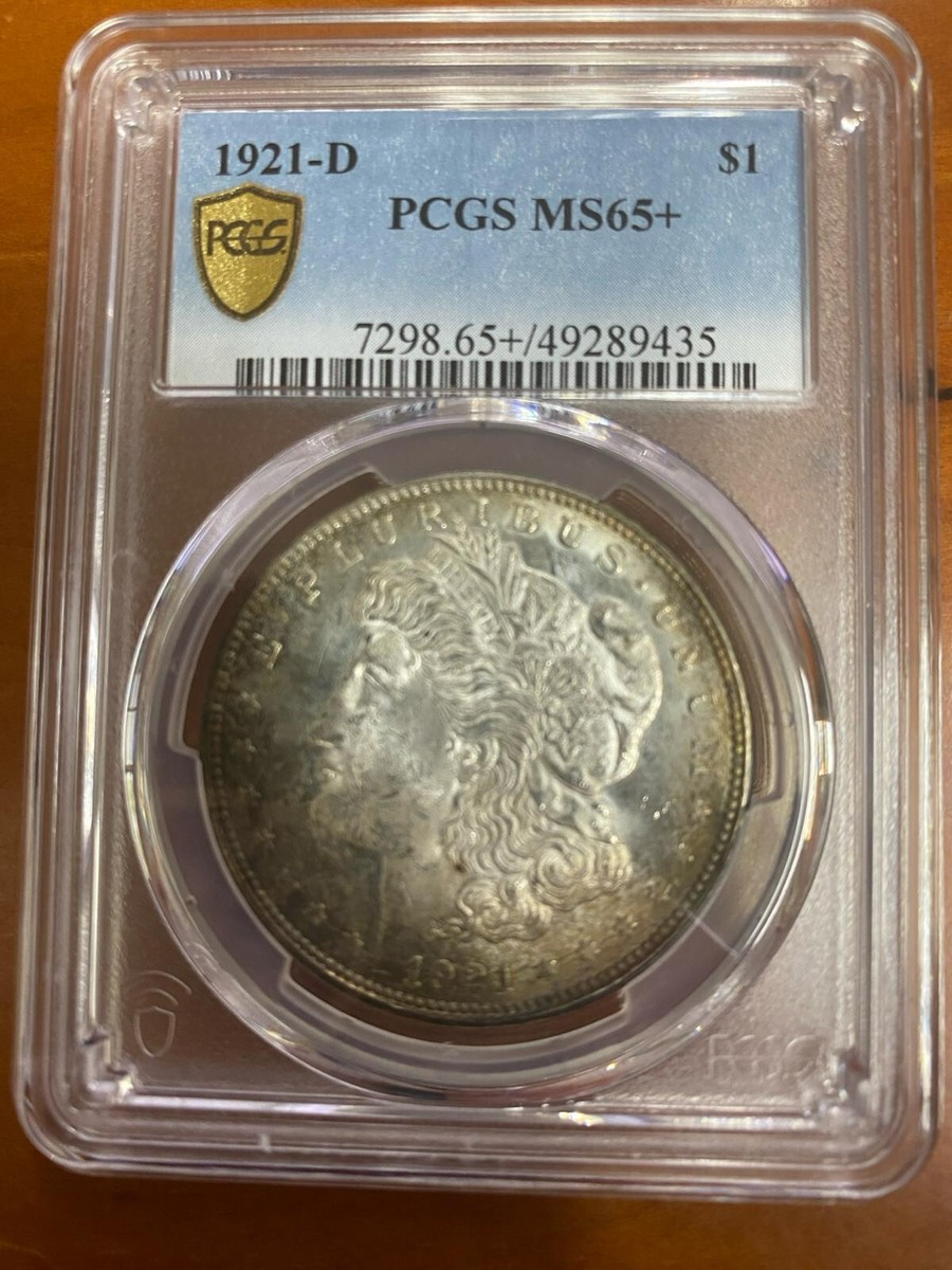1921-D Plateado Morgan Dólar Graduado Por Calidad Como MS-65 + Borde Tonificante