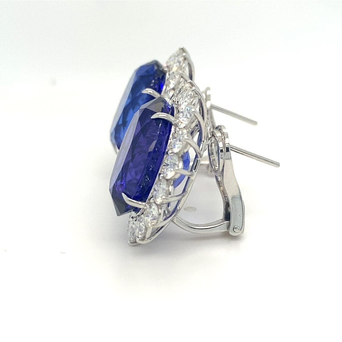 18k Weiss Gold 31.54ct Oval Tansanit & 5.09ct Diamant Huggie Ohrringe