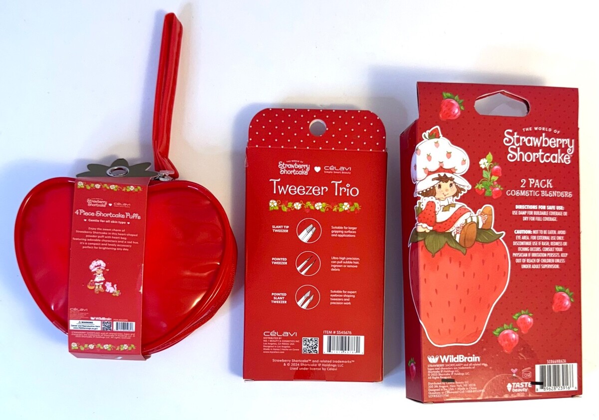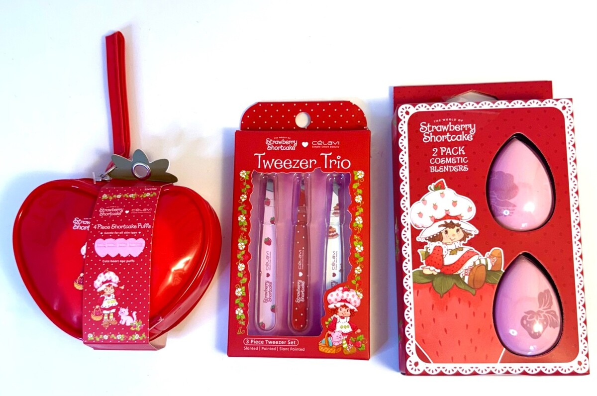 Strawberry Shortcake Bundle Makeup Cosmetic Tools Puffs Tweezers Blenders Set 3x