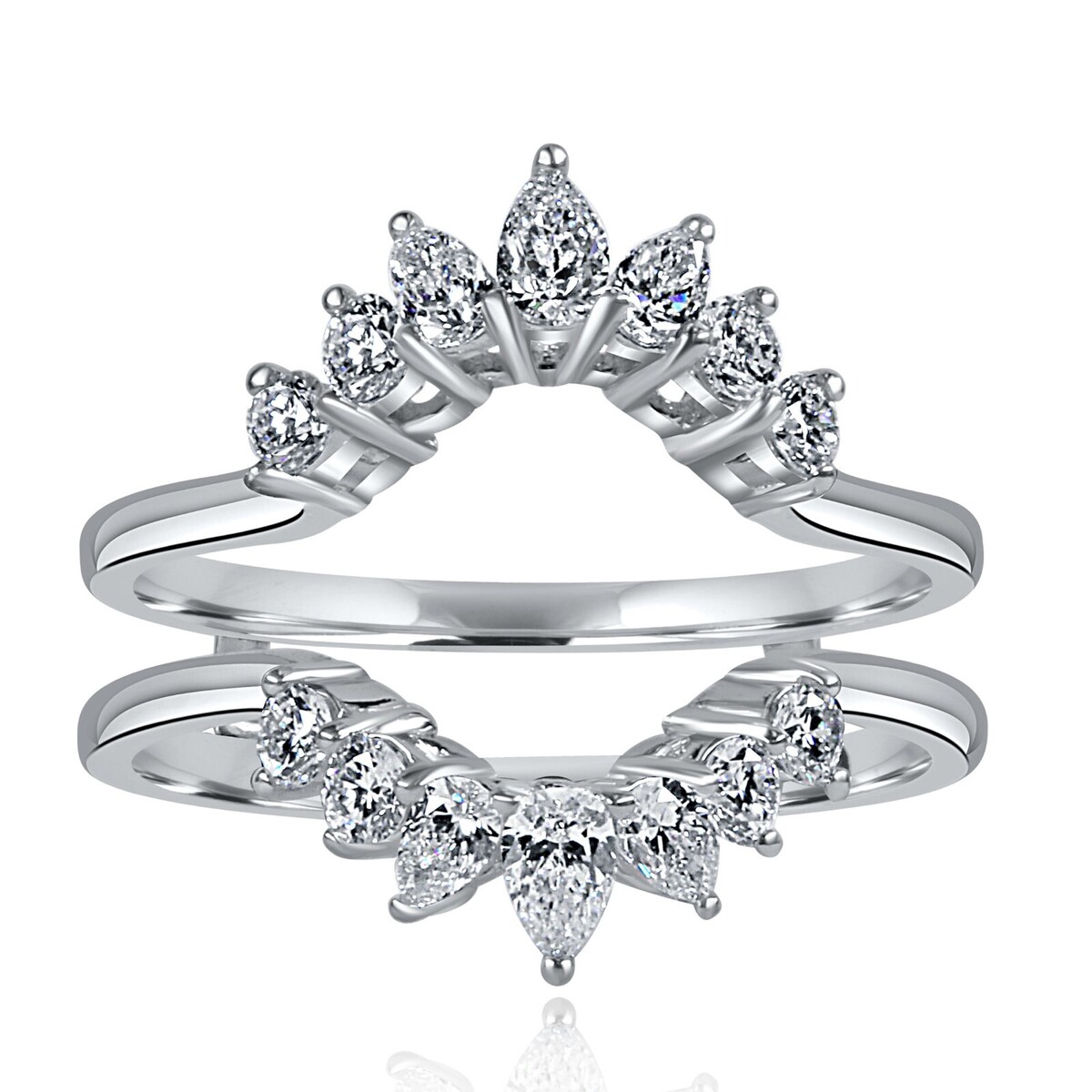 Enhance the glorious Sparkle of your engagement ring with this beautiful 0.75 carat pear shaped and round cut lab grown diamond tiara guard ring in 14k white gold.