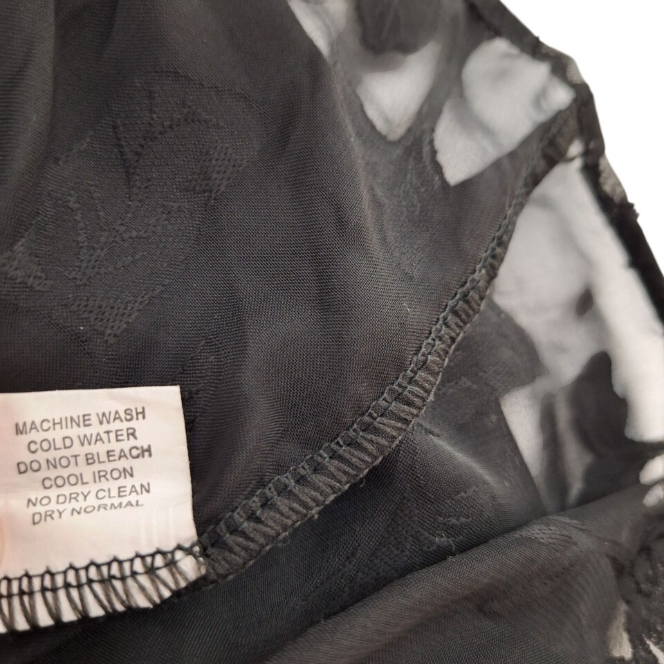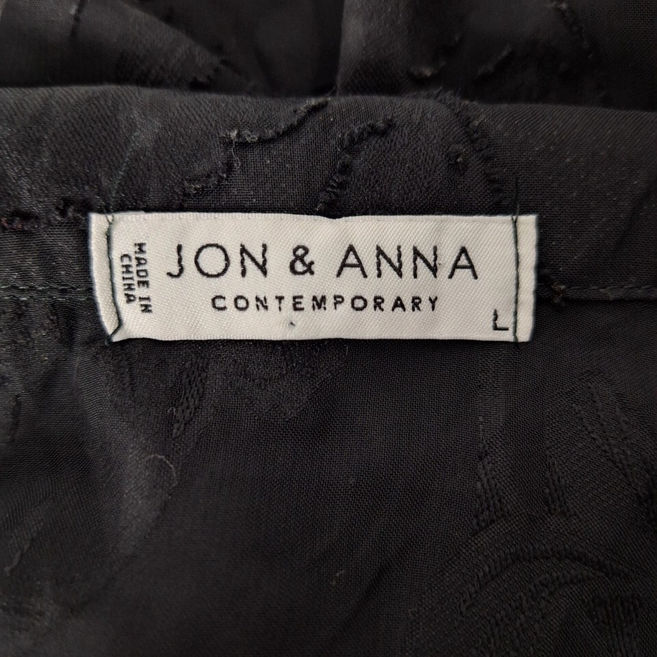 Jon & Anna Black Sheer Floral Burnout Blouse Large Long Sleeve Button-Up Shirt